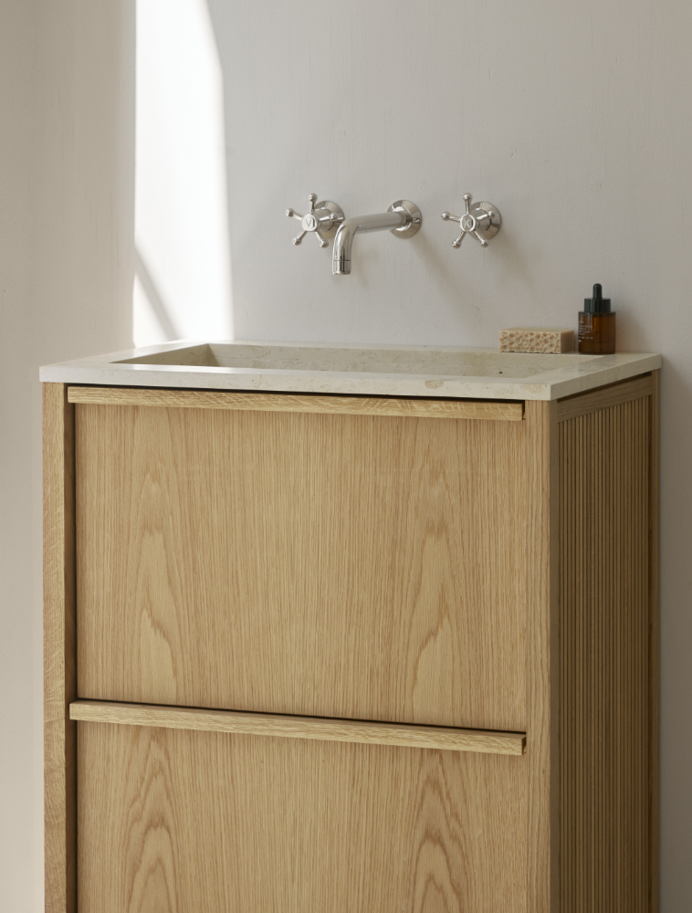 Christiansborg Slot blev lagt i ruiner under branden i 1884, men da genopbygningen tog form, blev TONI Copenhagen (dengang under navnet “E.O. Auchenberg”) valgt som storleverandør af sanitetsarmaturer. Det er herfra, navnet til Christiansborg-grebet stammer. Mange årtier senere, som led i TONI Copenhagens relancering af dette ikoniske armatur i 1985, blev hoffet igen de første til at bestille det til Amalienborg Slot. Med sit karakteristiske femgrenede håndhjul bliver det, som dengang, værdsat for sit tidløse, ærlige og let poetiske udtryk.